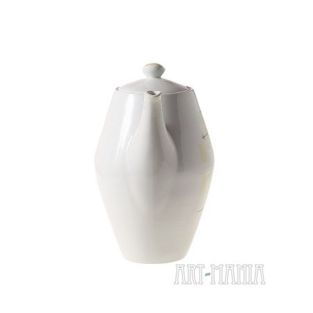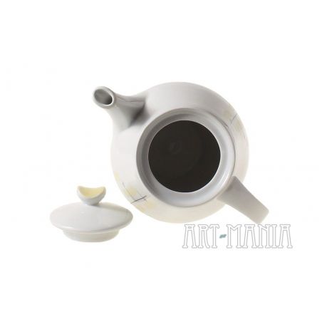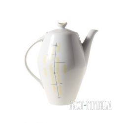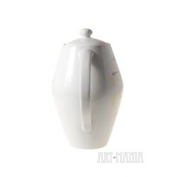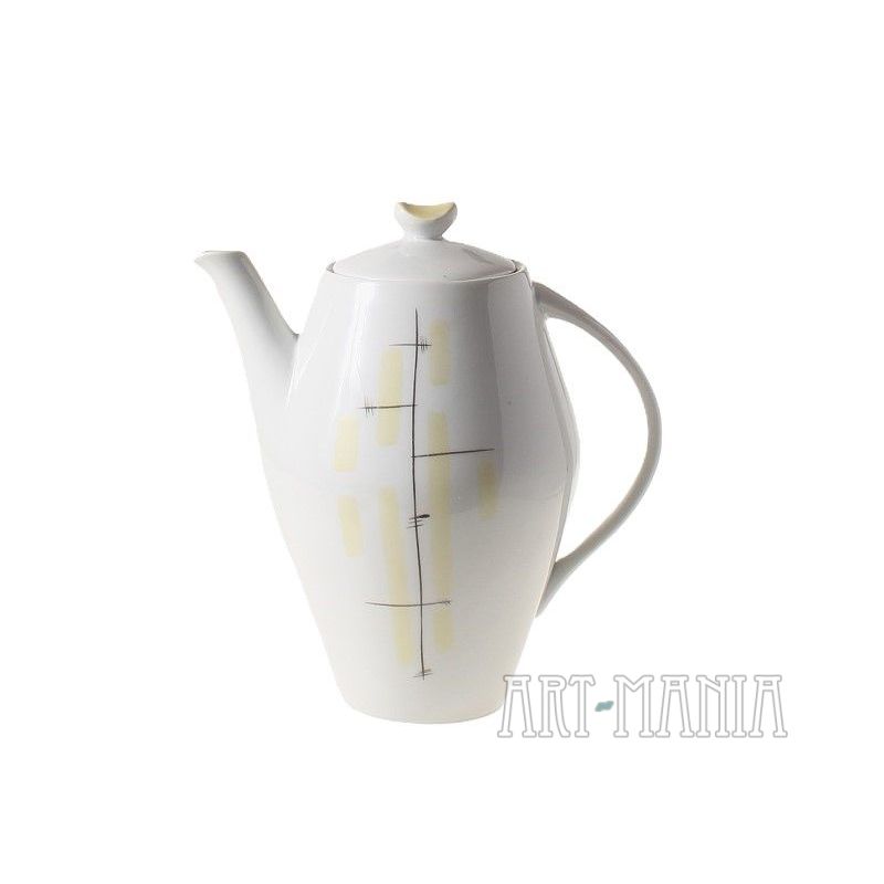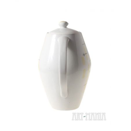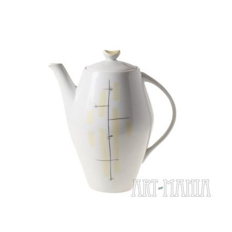 Dzbanek z porcelany - element serwisu do kawy/herbaty „Joanna” zaprojektowanego przez Wincentego Potackiego. Zestaw pochodzi z Zakładów Porcelany Stołowej „Karolina” w Jaworzynie Śląskiej. Stylistyka new look. Lata 60XXw.