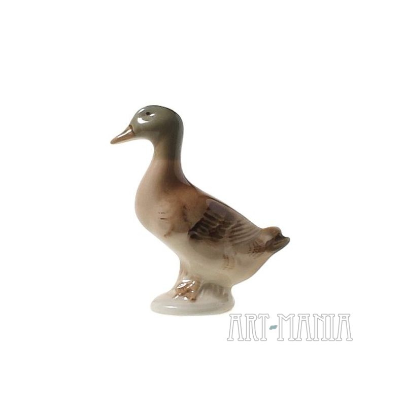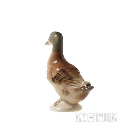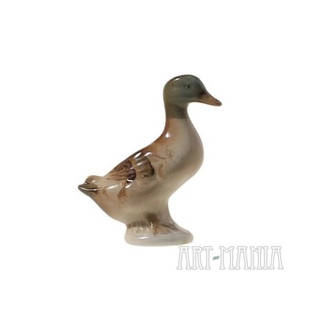Mała figurka w kształcie kaczki. Wykonana z porcelitu, malowana, szkliwiona. Pochodzenie nieznane. II poł. XXw.