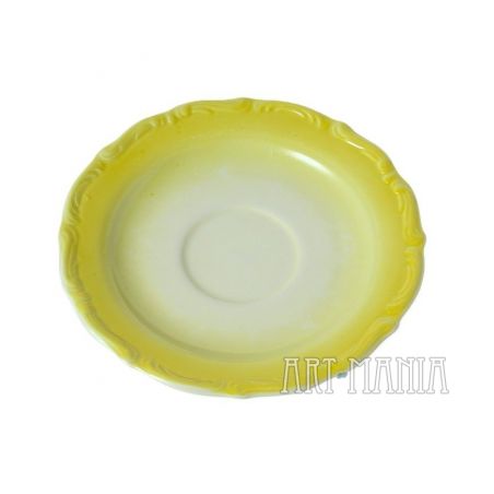 Brak pęknięć, odprysków i osadu. Na spodzie kołnierza jednego ze spodków niedoszkliwienie. Na uszkach filiżanek i na taflach spodków punktowe przetarcia cytrynowej malatury. W rzeczywistości żółta malatura ma odcień cytrynowy – na niektórych zdjęciach wygląda na żółć słoneczną.