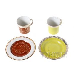 Filiżanka brązowa: wysokość: 6,7cm, średnica u góry: 6,3cm, pojemność: 125ml