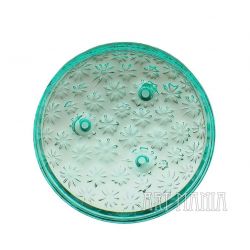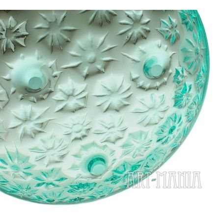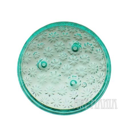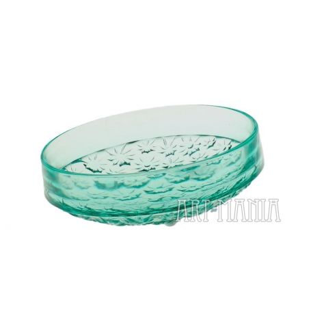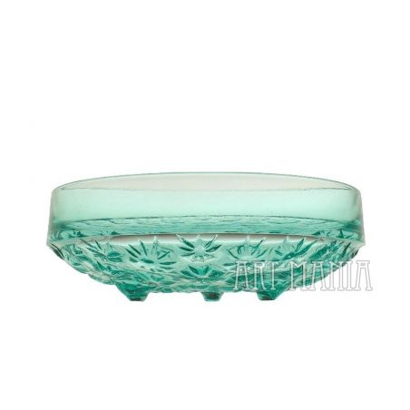Patera na trzech nóżkach wykonana ze szkła prasowanego barwionego w masie na kolor chłodnej zieleni. Kołnierz gładki, wypukła podstawa zdobiona reliefem kwiatowym. Paterę w 1969r. zaprojektował Jiri Brabec dla huty szkła Rosice w Czechosłowacji. Numer katalogowy 5166.