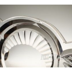Wnętrze czyste, bez osadu. Na krawędzi górnej trzy mikorubytki po ok. 2-3mm. Na krawędziach szlifowanych wypustek i na krawędzi podstawy ok. 10 mikroubytków po ok. 1mm. Po uderzeniu w czarę misa wydaje dźwięk jak dzwon.