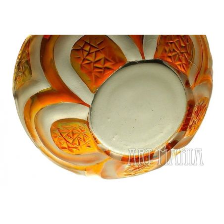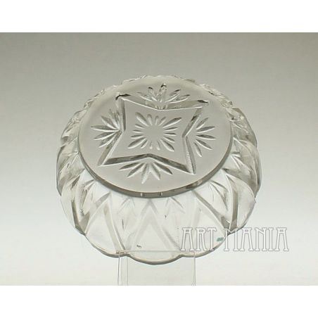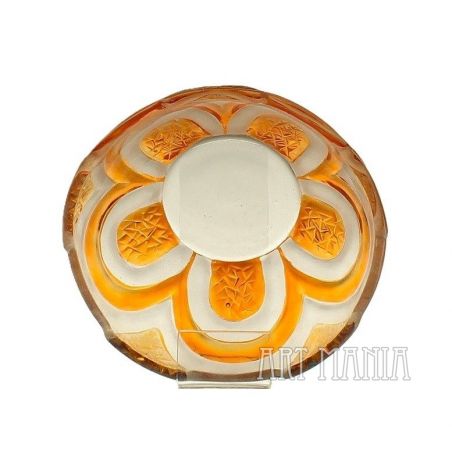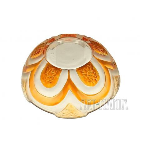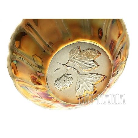 Salaterka art deco z detalami carnival glass – wzór nr 438: średnica: ok. 11,5cm, wysokość: 4,5cm,