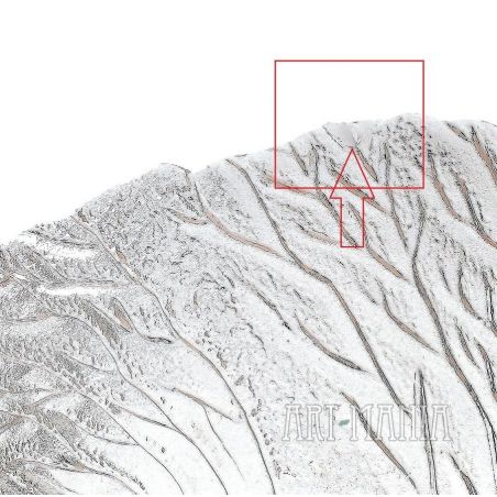 Na krawędzi czary niewielka szorstkość, od spodu w tym miejscu płaski odprysk ok. 5mm. Jedno i drugie niewidoczne ze względu na mnogość detali.
