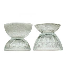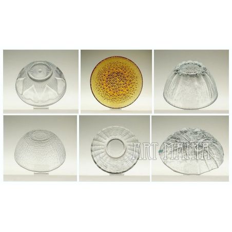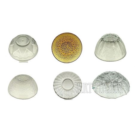 Sześć salaterek wykonanych ze szkła prasowanego (pięć bezbarwnych, jedna miodowa). Salaterki pochodzą z: Huty Szkła Gospodarczego „Hortensja” w Piotrkowie Trybunalskim (model nr: H 19-71), Huty Szkła Gospodarczego „Ząbkowice” w Dąbrowie Górniczej (model „Kier” i „Cora”), francuskiej wytwórni „Arcoroc” (model ze skamieliną), Huty Szkła „Białystok” (model miodowy) i salaterka bezimienna w typie ice glass.