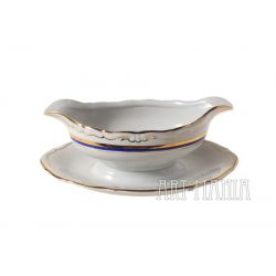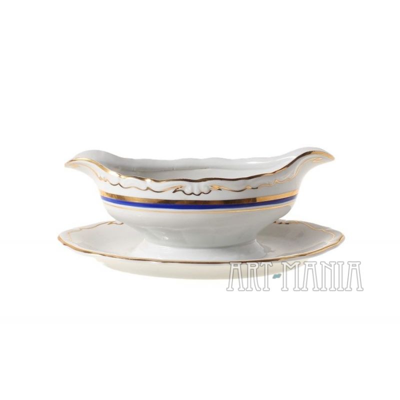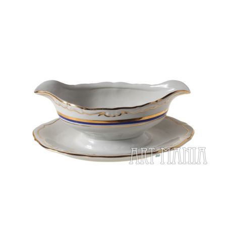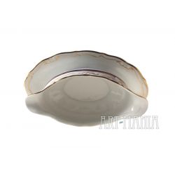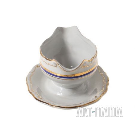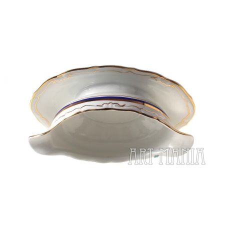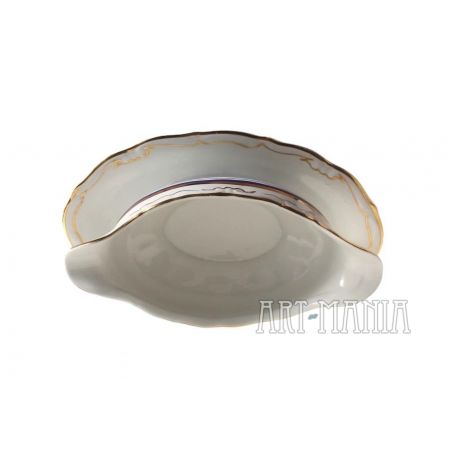 Wyzłacana sosjerka z białej porcelany – elementy serwisu obiadowego „Maria Teresa”. Zestaw pochodzi z Zakładu Porcelany Stołowej „Wałbrzych” w Wałbrzychu. Lata 60XXw.