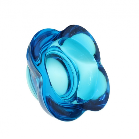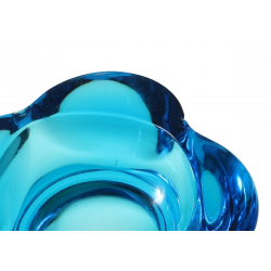 Popielnica wykonana ze szkła prasowanego barwionego w masie na kolor błękitny. Pochodzi z huty szkła Rosice zrzeszonej w Sklo Union. Projekt Rudolfa Jurnikla z 1962r. Numer seryjny 1175/145.