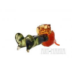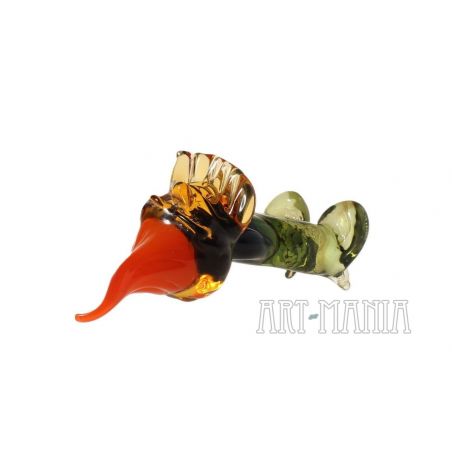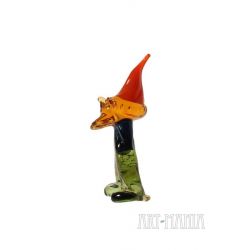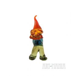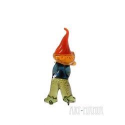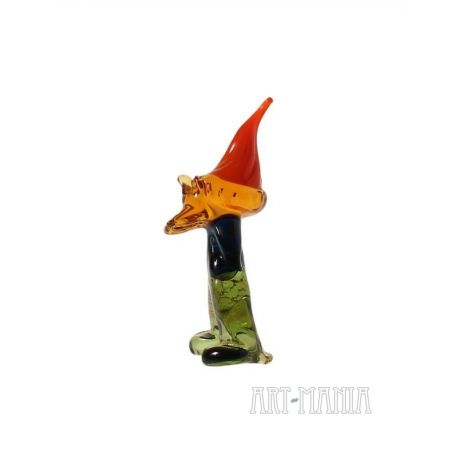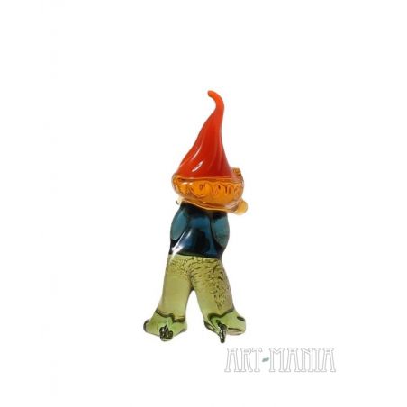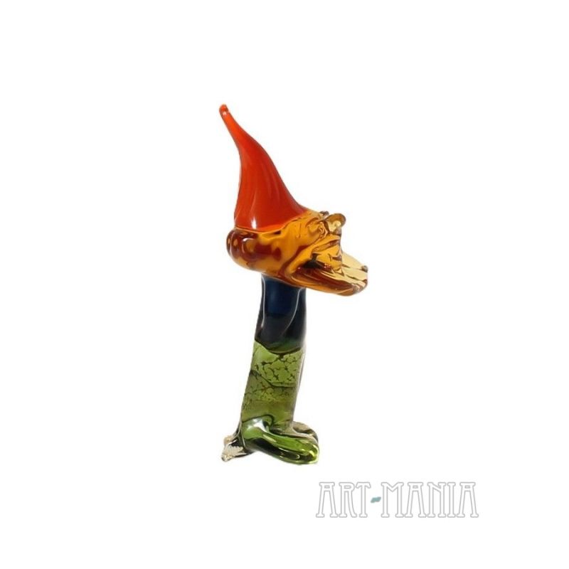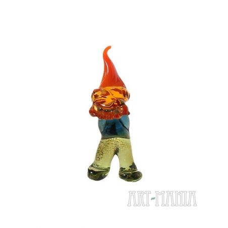 Figurka – krasnal. Wykonana z kolorowego szkła sodowego, ręcznie formowana. Czechosłowacja, II poł. XXw.