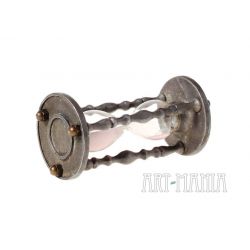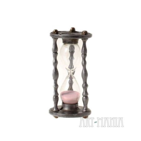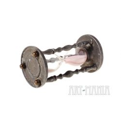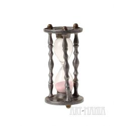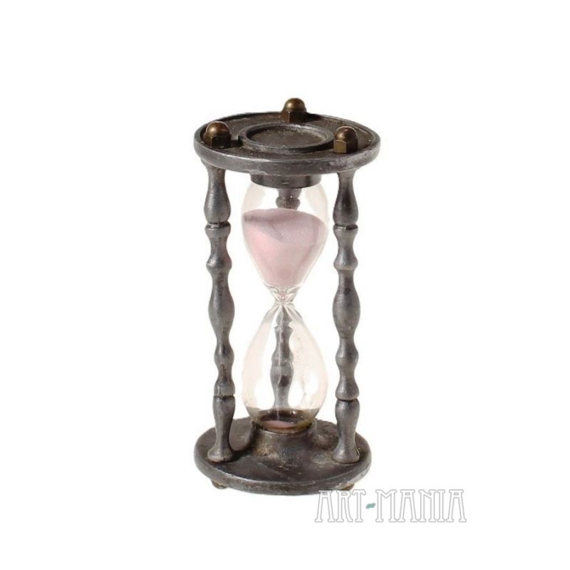 Metalowa klepsydra z różowym piaskiem. Pochodzi z Niemiec, lata 60XXw.
