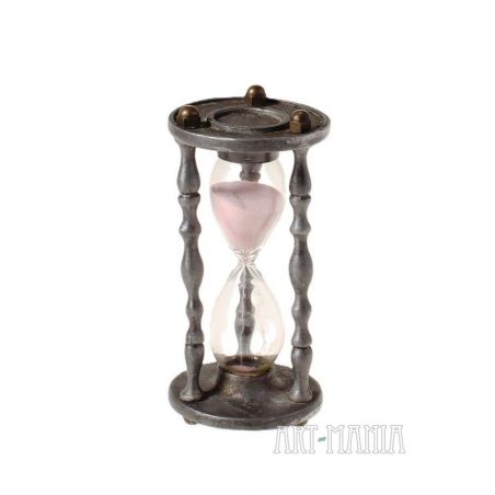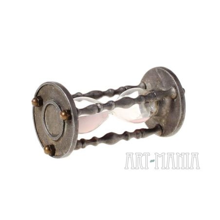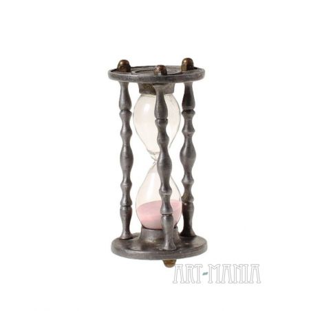 Wymiary: wysokość: ok. 11cm, średnica krążka podstawy: ok. 5,5cm, czas przesypywania piasku: ok. 3 min.