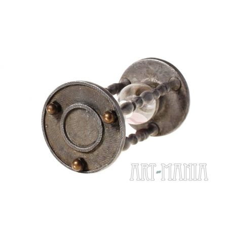 Korpus klepsydry wykonano przypuszczalnie z cyny, a wkręty z mosiądzu. Cyna pokryta jest szarawą patyną. Szklane ampułki szczelne, bez uszkodzeń. Metalowe elementy klepsydry można rozkręcać.