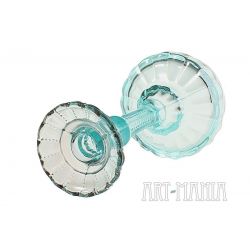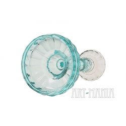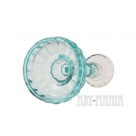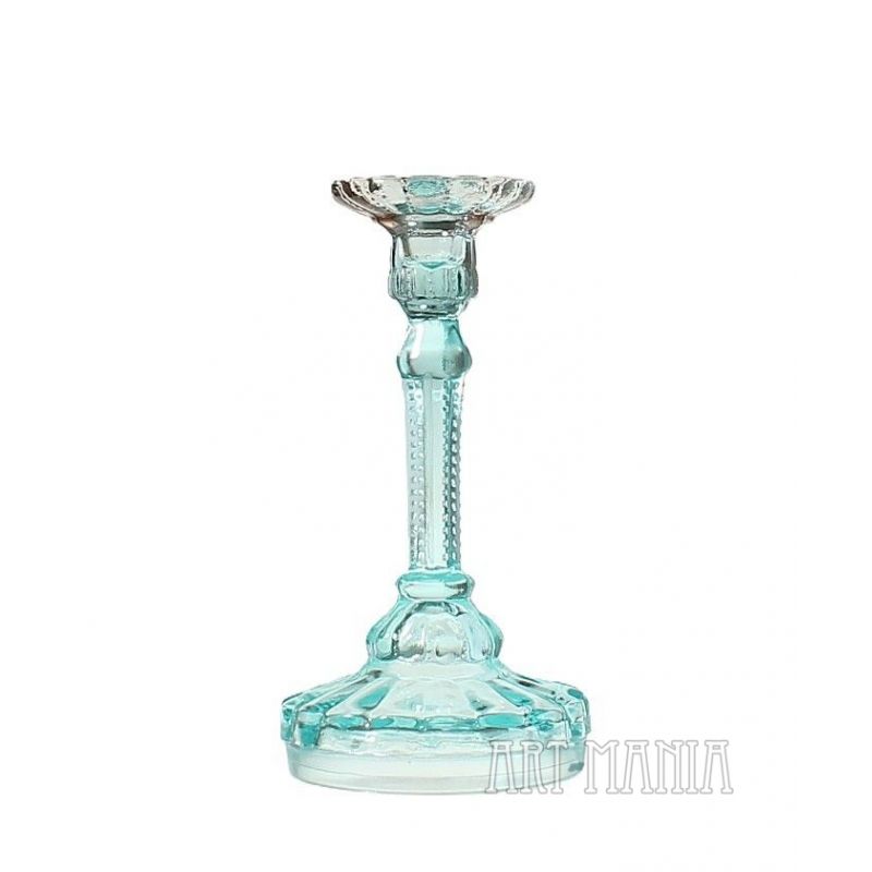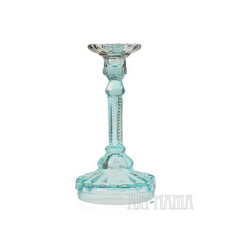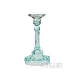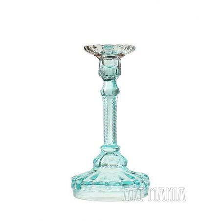 Szklany świecznik/lichtarz jednoświecowy wykonany ze szkła prasowanego barwionego w masie na kolor seledynowy i ametystowy (główka). Pochodzi z Huty Szkła Gospodarczego „Ząbkowice” w Dąbrowie Górniczej. Model obecny w ofercie huty już na początku XXw. – w katalogu z 1910r. ma numer 1155. Wytwarzany także w okresie powojennym.