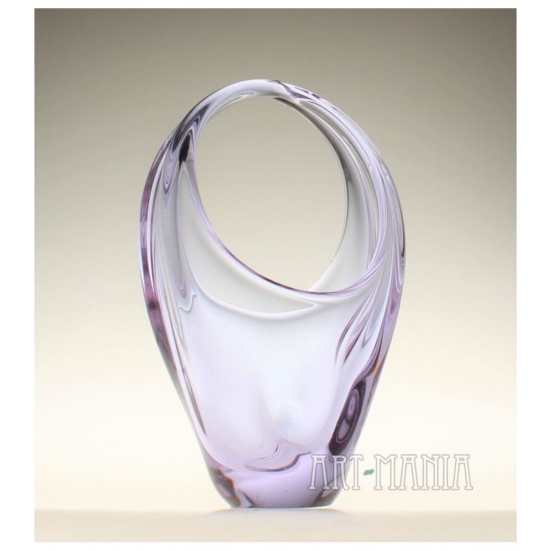 Ręcznie formowany koszyczek wykonany ze szkła neodymowego – w sztucznym świetle zmienia barwę na niebieską. Projekt Miroslava Klingera. Pochodzi z huty szkła Zelezny Brod. Czechosłowacja lata 60XXw.