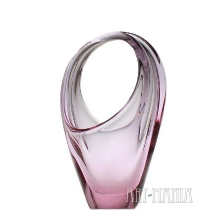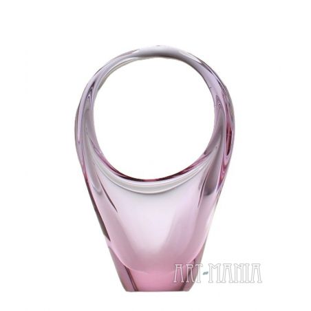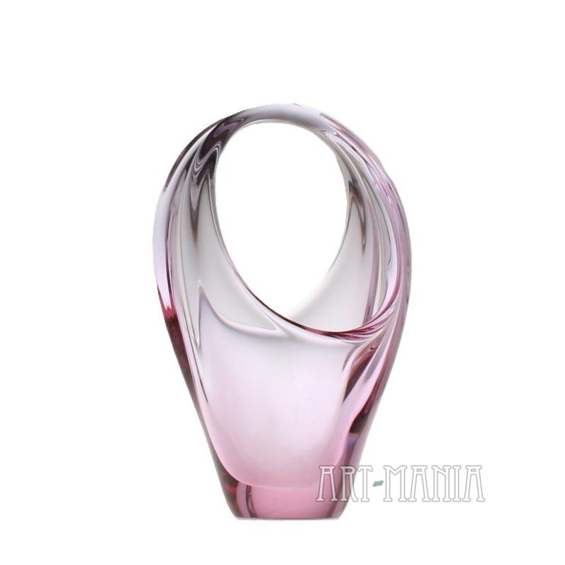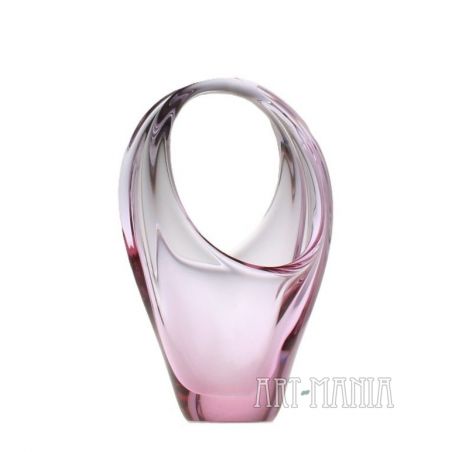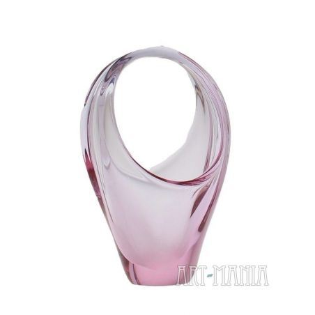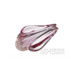 Koszyczek/patera na łakocie wykonana ze szkła ręcznie formowanego, barwionego w masie na kolor różowy. Pochodzi z wytwórni Zelezny Brod. Projekt Miroslava Klingera. Czechosłowacja, lata 60XXw.