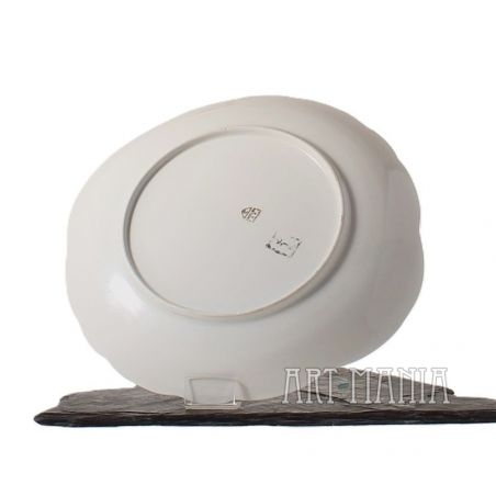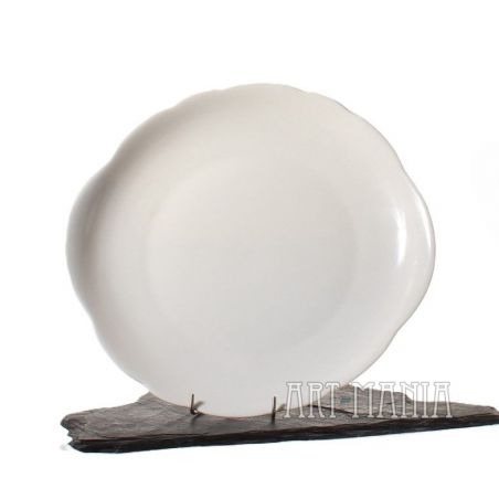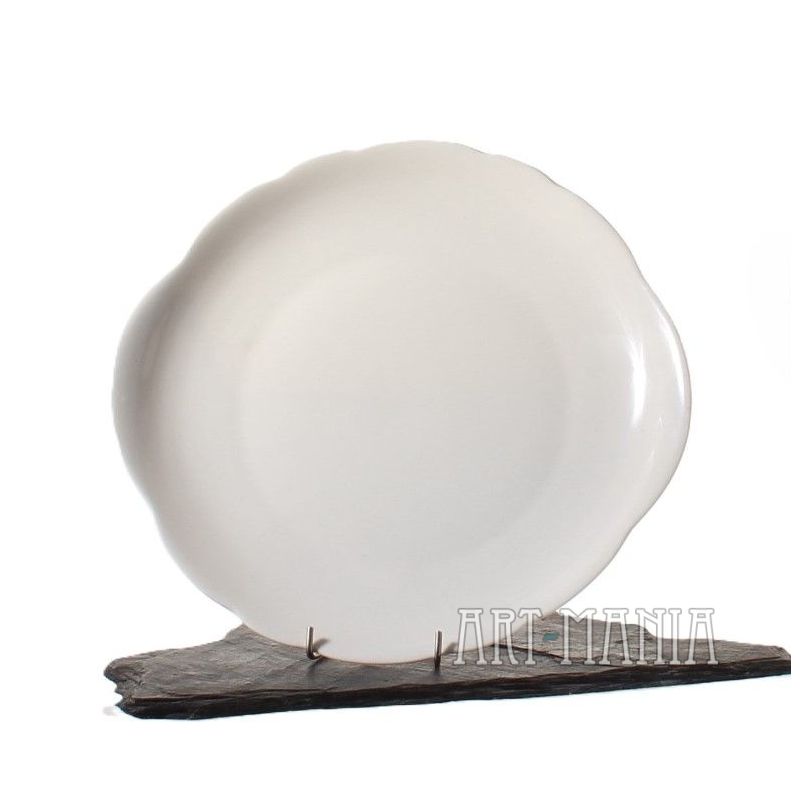 Talerz z białej szkliwionej porcelany. Pochodzi z Zakładów Porcelany Stołowej „Ćmielów” w Ćmielowie. Lata 60XXw.