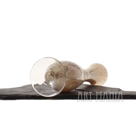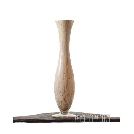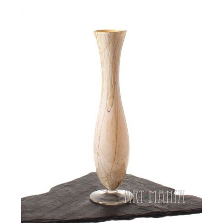 Wazon typu flet wykonany z warstwowego szkła sodowego: z zewnątrz bezbarwny – wnętrze w kolorze piaskowego melanży z ciemnym żyłkowaniem. Wazon pochodzi z jednej z krośnieńskich hut szkła – przypuszczalnie z huty „Józefina”. Lata 90XXw.