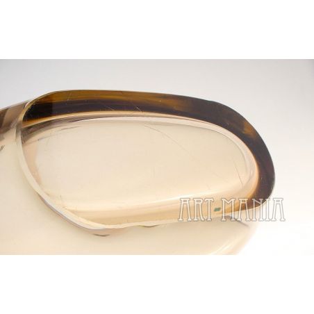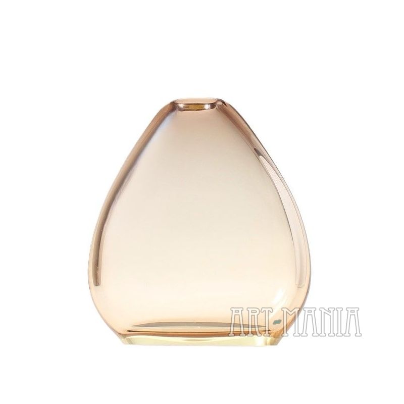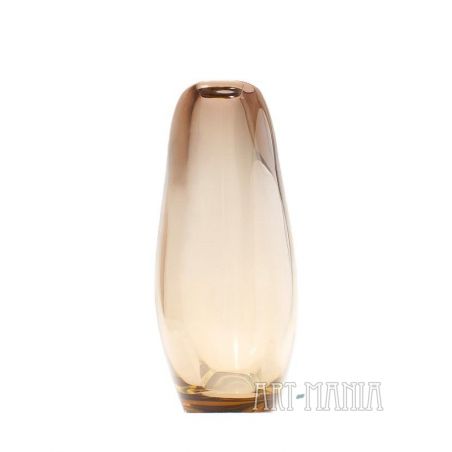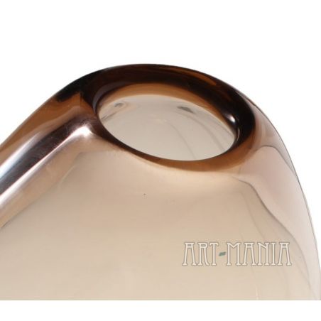 Wazon wykonany ze szkła ręcznie formowanego barwionego w masie na kolor brązowy i cytrynowy. Brzusiec spłaszczony, trójkątny z wąskim wlewem, podstawa owalna. Jest to jeden z projektów Miroslava Klingera. Wazon pochodzi z wytwórni Zelezny Brod w Czechosłowacji. Lata 60XXw.