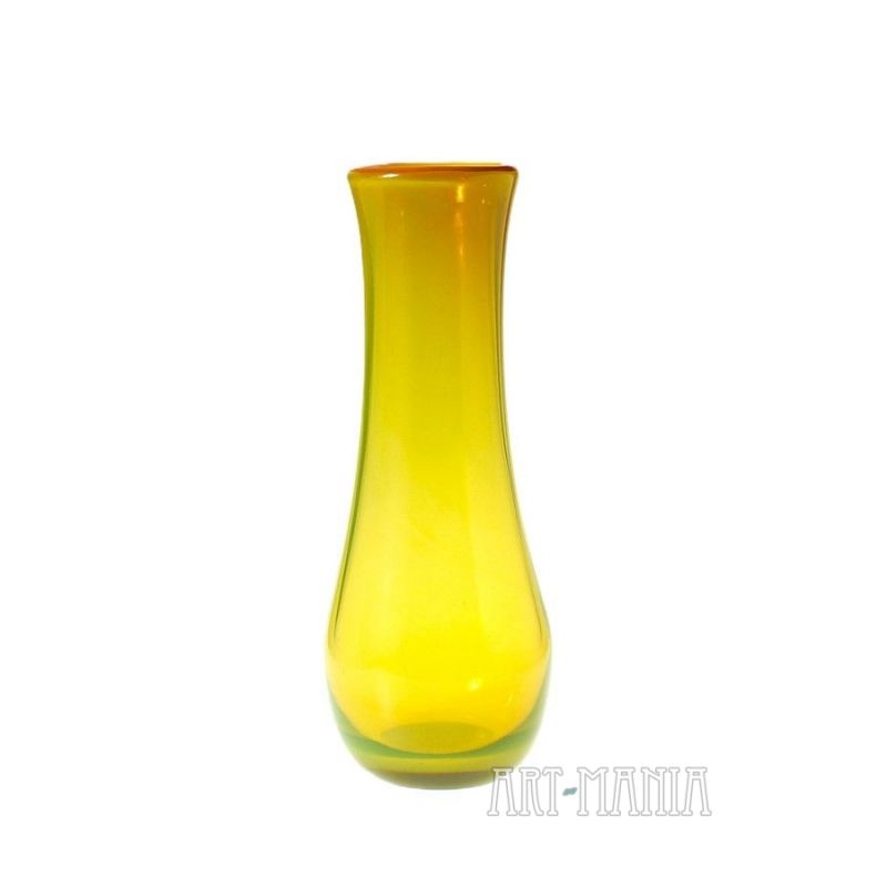 Wazon wykonany ze szkła ręcznie formowanego, barwionego w masie na kolor żółty. Polska, lata 70/80XXw.